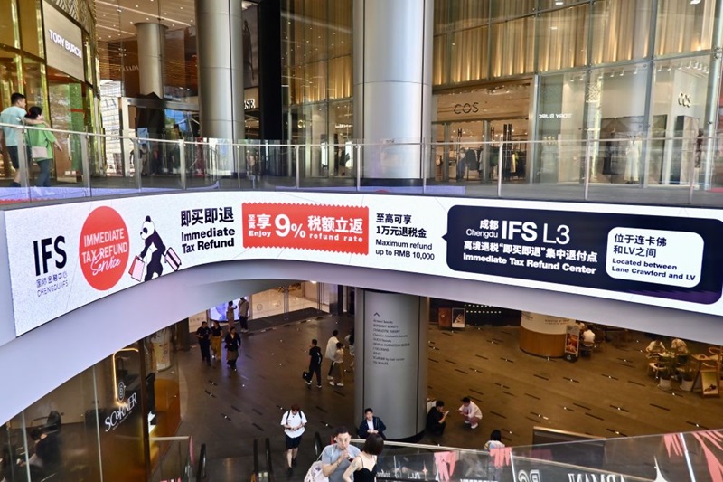成都IFS商场的离境退税“即买即退”集中退付点指引。(宗靖然 摄)